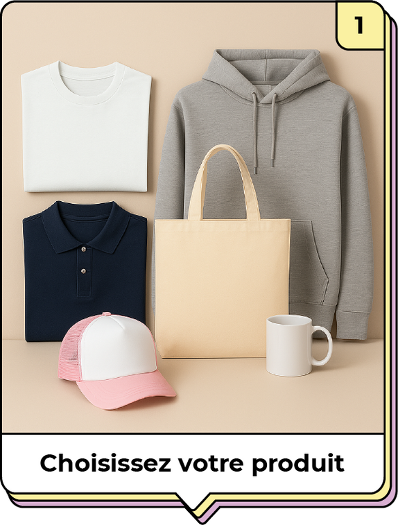 Choisissez le produit de votre choix parmi une large sélection et commencez la personnalisation.